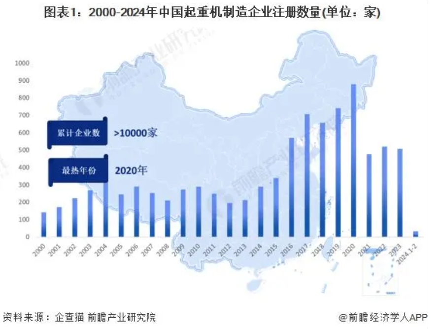 ——近幾年起重機制造企業(yè)注冊數(shù)量有所下滑
