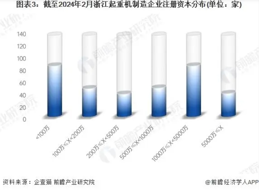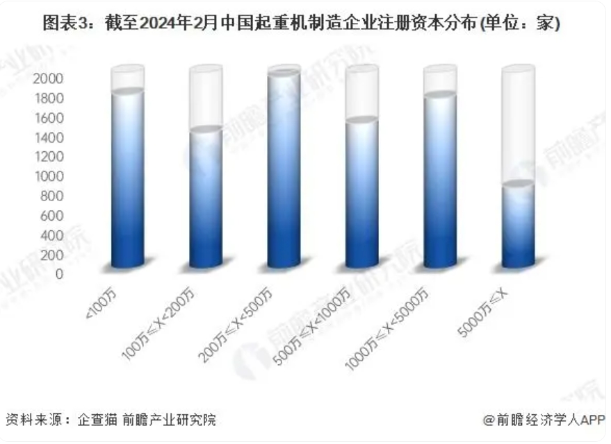 ——起重機制造企業(yè)注冊資本在500萬以上的數(shù)量占比超50%