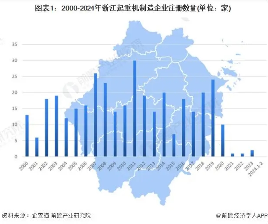 ——近幾年浙江新注冊起重機制造企業(yè)數(shù)量下降
